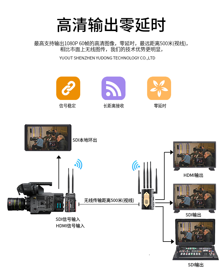 | 傳輸距離/延時(shí) | 空曠距離最遠(yuǎn)可達(dá)約500米 | 無(wú)壓縮零延時(shí) |